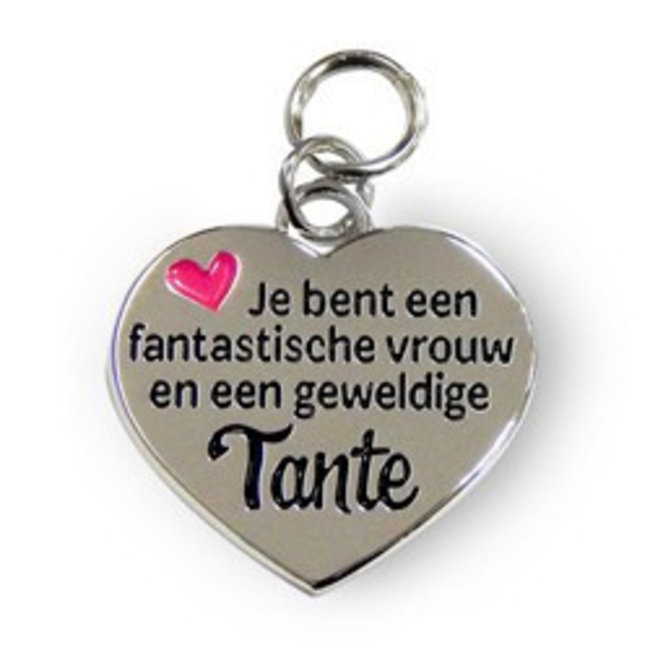 Dit Charms for You bedeltje van het merk Miko is een prachtig sieraad met een liefdevolle boodschap: "Je bent een fantastische vrouw en een geweldige tante". Perfect om te dragen aan een sleutelhanger, armband of ketting als een blijk van waardering voor een speciale tante.