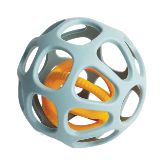 Deze set van twee Activity Balls is duurzaam sensorische speelgoed en biedt baby's een bevredigend kauwmoment en kan hen helpen hun greep en behendigheid te versterken bij het vasthouden, pletten, rollen en gooien van de ballen.