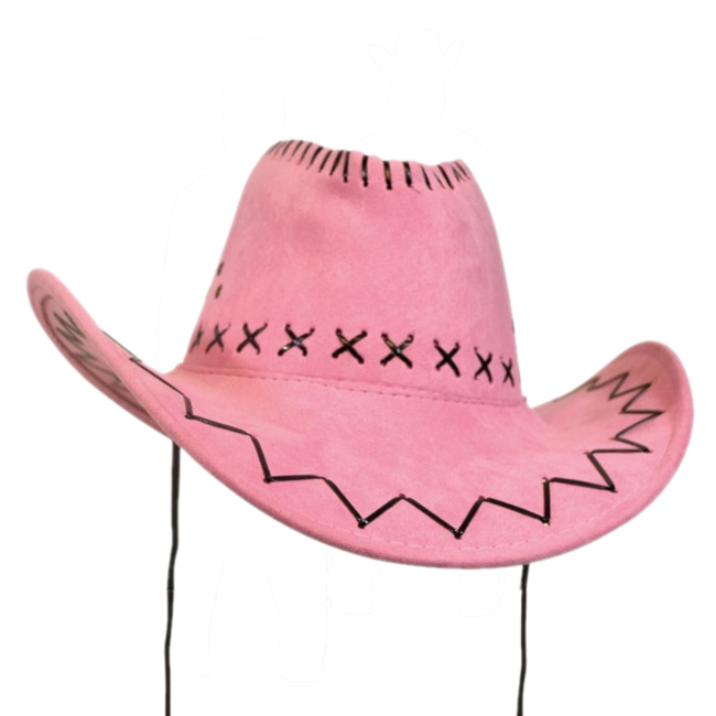 Licht roze cowboyhoed met lederen look van het merk Witbaard. Lees meer.