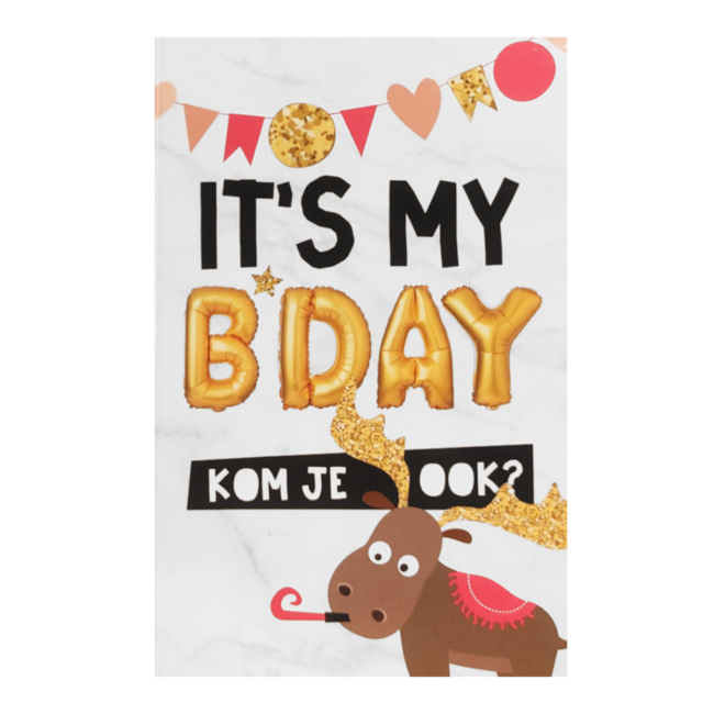 6 Uitnodigingskaarten van het merk Interstat met daarop de tekst:'It's my b'day' en een rendier met een toeter afgebeeld. Inclusief 6 gouden enveloppen. Lees meer.
