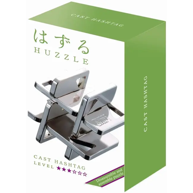 De Huzzle Cast Hashtag van Eureka is een breinbreker die eruitziet als het bekende hekje. Het doel van deze metalen puzzel is om de in elkaar gehaakte delen los te maken en ze daarna weer precies op de juiste manier in elkaar te zetten.