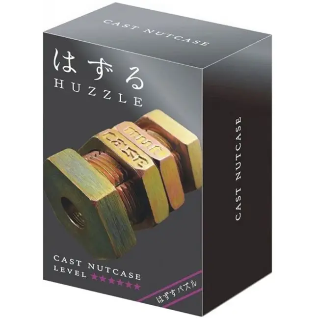 Deze puzzel lijkt op het eerste gezicht op een set bouten en moeren maar schijn bedriegt. Je moet de onderdelen op de juiste manier draaien om ze uit elkaar te krijgen. De messingkleurige afwerking geeft het een stoere uitstraling. Omdat dit niveau zes is heb je veel geduld nodig. De set zit in een zwart doosje van twaalf bij acht centimeter. Het is een flinke klus om alles daarna weer in elkaar te zetten.