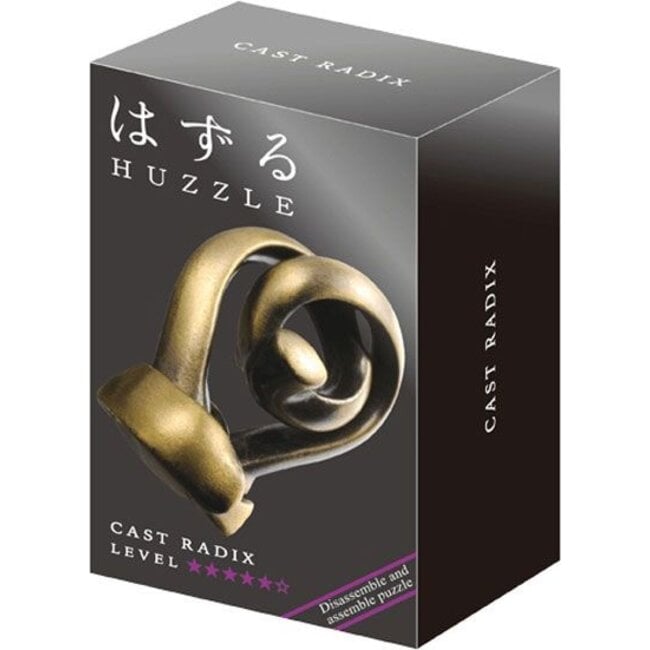 Deze puzzel ziet eruit als een wortelgestel dat in de war is geraakt. De naam komt uit het Latijn en betekent wortel, wat goed past bij de natuurlijke vormen. Je moet de stukken op een precieze manier langs elkaar schuiven om de oplossing te zien. De antiek bronzen kleur geeft het geheel een klassieke uitstraling. De set zit in een zwart doosje van twaalf bij acht centimeter. Een pittige klus voor wie houdt van een raadsel dat niet zomaar opgelost is.
