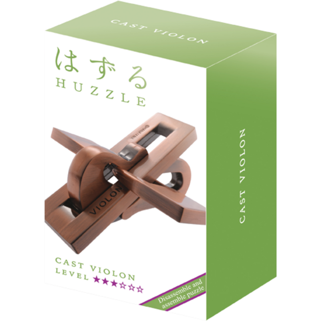 Dit raadsel draait om de snaren van het instrument. Je moet de vloeiende vormen precies goed bewegen om de oplossing te vinden. Het metaal heeft een warme koperen kleur wat het een klassieke uitstraling geeft. Het is een fijn spelletje om je logische denkvermogen mee te trainen. De verpakking is twaalf bij ruim zeven centimeter groot. Na het uit elkaar halen is de echte taak om de viool weer compleet te maken.