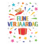 Een vrolijke A4-kaart met de tekst ‘Fijne verjaardag’, vol kleur en feestelijke elementen. Een perfecte keuze voor jong en oud, waarmee je iemand op een originele manier in het zonnetje zet.