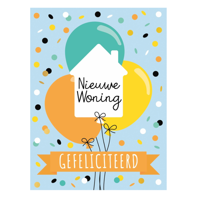 Mooie grote kaart met de tekst: 'Nieuwe woning' en met de afmetingen ingeklapt 22 x 29,5 cm en 44 x 29,5 cm uitgeklapt. Deze kaart heeft door de grootte genoeg ruimte om iedere collega's, vrienden of familieleden een klein verhaaltje te laten schrijven. Zo wordt het geven van deze kaart nog persoonlijker. De a4 formaat kaart wordt geleverd met een witte envelop.