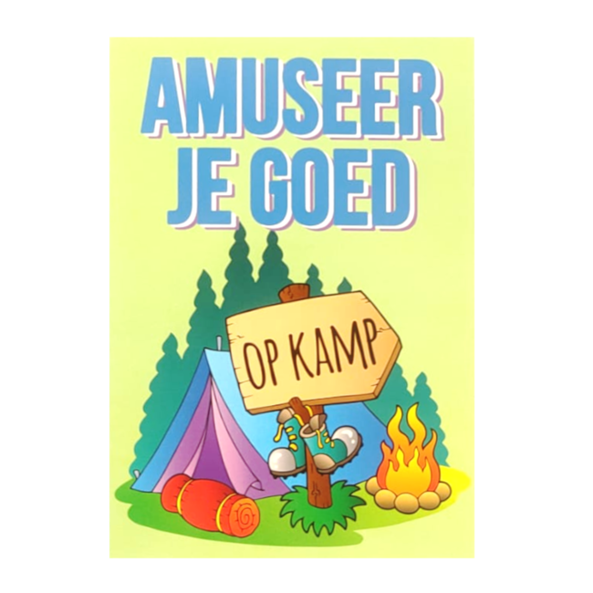 Artige wenskaart uit de serie Seasonals. Op deze kaart staat de tekst: 'Amuseer je goed op kamp'. De binnenkant van deze kaart is blanco. Zo heb je genoeg ruimte om deze kaart te personaliseren.