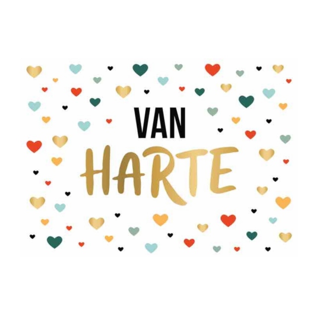Artige wenskaart uit de serie Daisy. Op deze kaart staat de tekst: 'Van harte'. Met extra glans en een gouden envelop geeft deze kaart en luxe uitstraling. Lees meer.