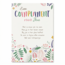 • Voorzijde: ‘Een compliment voor jou. Het is mooi om te zien hoe jij in het leven staat. Bij jou is het glas halfvol. Je ziet in bijna elke situatie wel een lichtpuntje.’