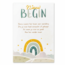 Een bemoedigende kaart voor wie aan het begin staat van iets nieuws, onverwachts of spannend. Met zachte kleuren, een regenboog en hoopvolle woorden – perfect voor iemand die wel wat steun kan gebruiken.