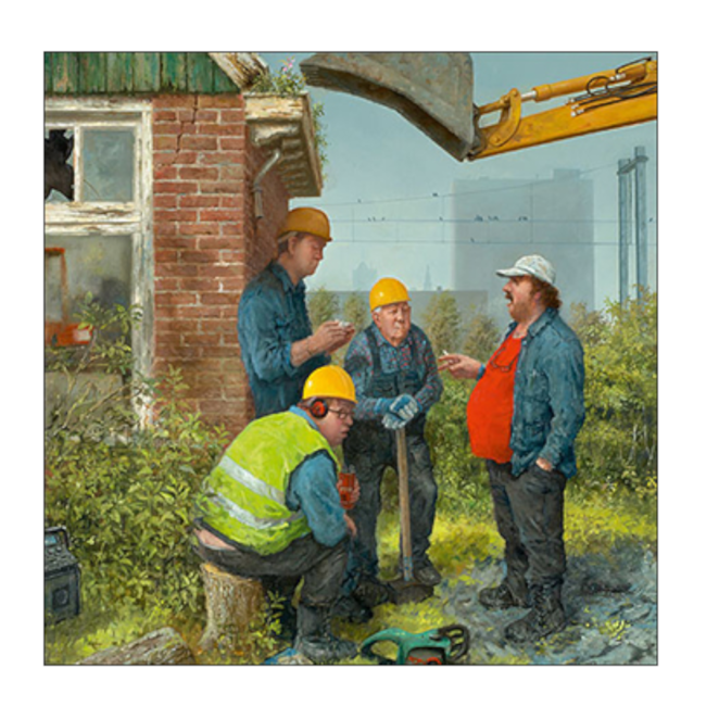 Of het nu gaat om een verjaardag, pensioen of zomaar een momentje tussendoor – met deze kaart breng je een grappige scène uit het dagelijks leven. De typische stijl van Marius van Dokkum zit vol treffende details, die zowel herkenbaar als verrassend zijn. Leuk voor iedereen met gevoel voor humor of een zwak voor werklui die liever overleggen dan doorwerken.