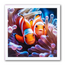 Deze vierkante kaart heeft een witte rand die de kleurrijke natuurfoto mooi omlijst. Op de afbeelding zie je twee oranje clownvissen met witte strepen die behoedzaam tussen de paarsblauwe tentakels van een anemoon zwemmen. Omdat de binnenkant blanco is heb je alle ruimte voor een eigen tekst. De stevige gevouwen kaart komt met een luxe zilverkleurige envelop die de post extra speciaal maakt. Het is een vrolijk gebaar voor de ontvanger.