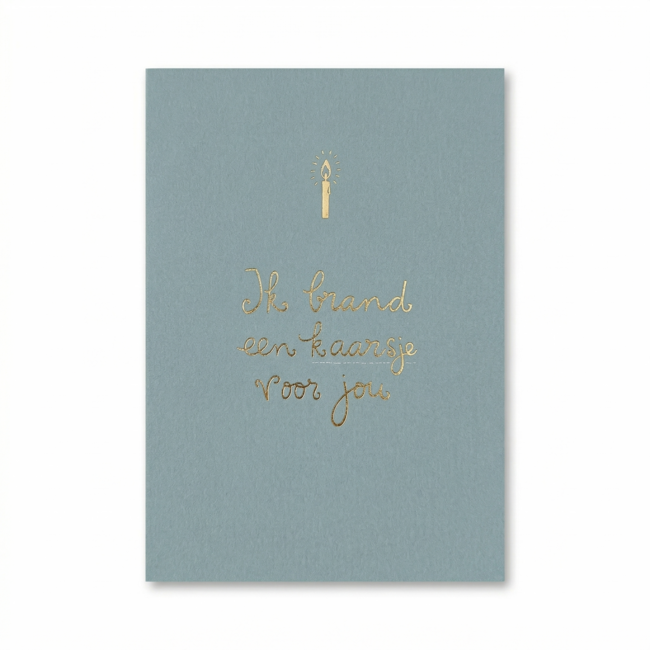 Deze kaart heeft een ingetogen blauwgrijze kleur die past bij de rustige boodschap op de voorkant. De gouden letters vallen subtiel op en geven het geheel een verzorgde uitstraling. Binnenin is de kaart leeg gelaten zodat je zelf een persoonlijke tekst kunt opschrijven voor de ontvanger. Het is een staand model van stevig karton. Je krijgt er een passende envelop bij om de post direct te versturen. Zo stuur je een klein lichtpuntje naar iemand die wel wat extra steun kan gebruiken.