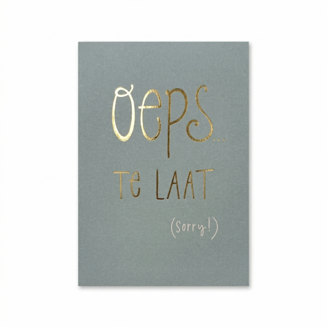 Ben je een verjaardag vergeten? Met deze grappige kaart van Paperclip Cards uit de Words up serie maak je het op een leuke manier goed. Een ideale kaart om alsnog een felicitatie te sturen met de tekst oeps te laat.