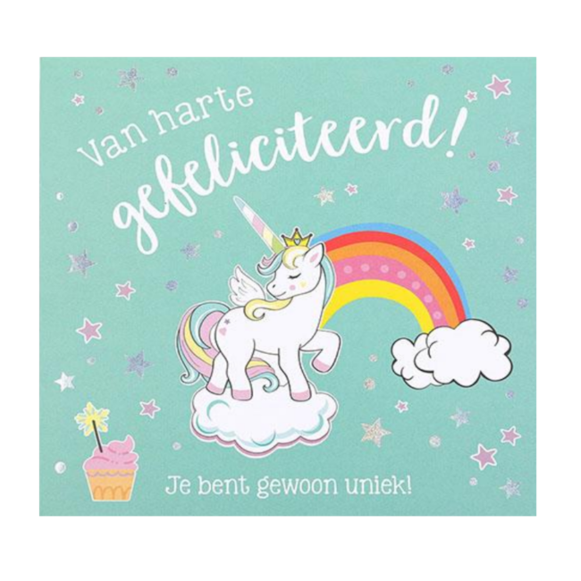 • Tekst voorzijde: "Van harte gefeliciteerd! Je bent gewoon uniek!"