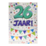 Een feestelijke wenskaart van Artige met envelop, speciaal voor iemand die 26 JAAR! wordt. Met kleurrijke vlaggetjes, confetti en glansdetails is dit een kaart vol verjaardagsvreugde en humor.
