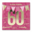 De kaart heeft een opvallende roze kleur met een patroon van sterren en cirkels. Op de voorkant schittert het getal zestig in grote gouden letters onder een vlaggenlijn vol mooie woorden. Teksten als lief en zorgzaam maken het een persoonlijk gebaar voor je moeder of een goede vriendin. Binnenin is er genoeg ruimte voor je eigen felicitatie. Er zit een passende envelop bij zodat je de verrassing direct met de post kunt versturen.