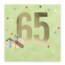 De kaart heeft een frisse lichtgroene kleur met een patroon van zachte cirkels en vrolijke confetti. Op de voorkant staat het getal 65 groot in glimmend goud samen met getekende cadeautjes. Binnenin staat een felicitatie en is er genoeg ruimte voor je eigen woorden. De kaart wordt geleverd met een bijpassende envelop zodat je deze meteen kunt versturen naar de jarige job.