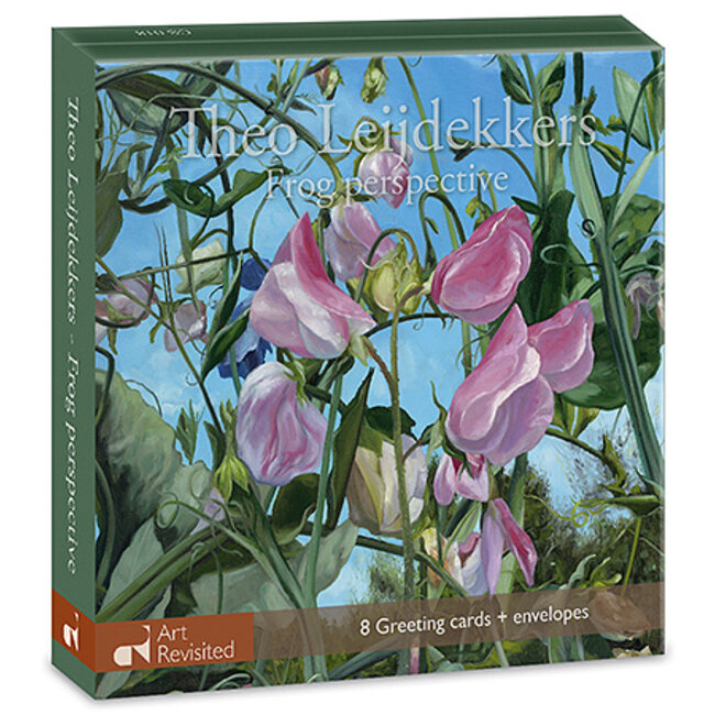 Met dit sfeervolle kaartenmapje van Theo Leijdekkers stuur je een echte bloemengroet. De set bevat acht dubbele wenskaarten met vier verschillende schilderijen vanuit een bijzonder kikvorsperspectief. Mooi om te versturen voor een speciale gelegenheid.
