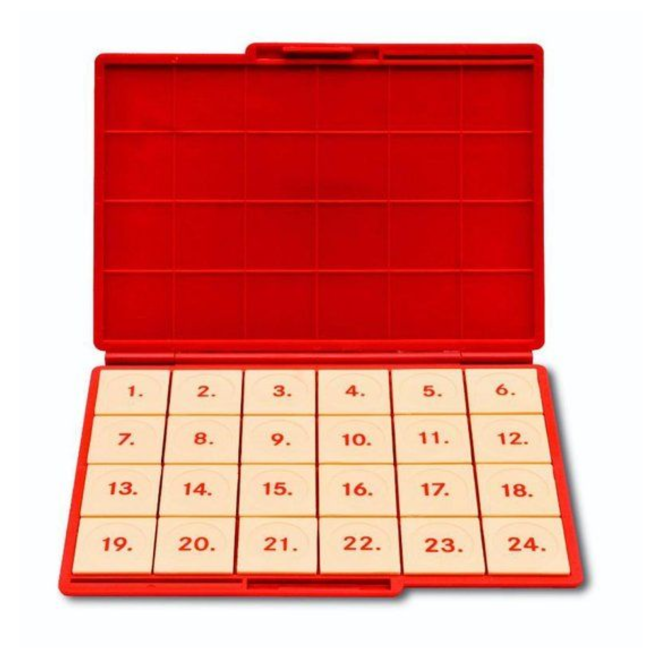 Bevat 24 stevige blokjes met cijfers