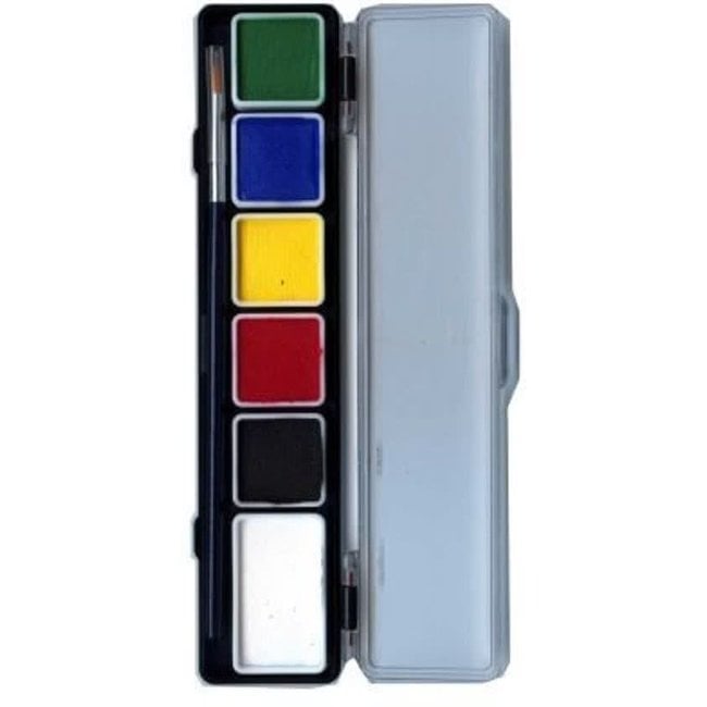 Schminkpalet basiskleuren met kwastje van het merk Superstar met 5x3 gram en 1x6 gram schmink.