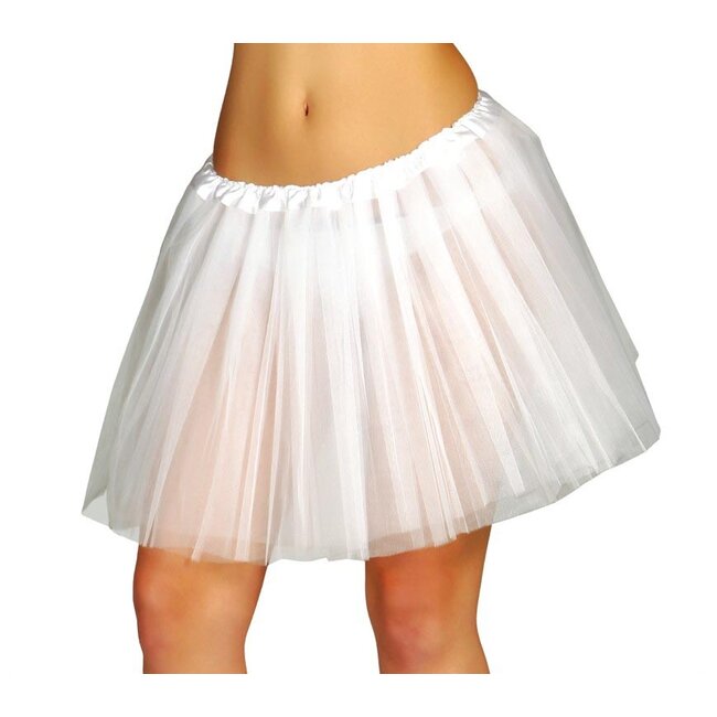 Dit rokje is gemaakt van meerdere lagen witte tule, wat zorgt voor een luchtig en wijd effect. De elastische band aan de bovenkant zorgt ervoor dat de tutu prettig aansluit in de taille. Het materiaal is niet brandvertragend en mag niet worden behandeld met een stoomstrijkijzer. Je kunt de rok los dragen of onder een ander jurkje om deze extra mooi uit te laten staan.