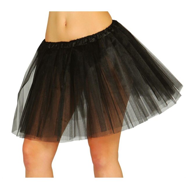 Het rokje is gemaakt van fijne zwarte tule die in verschillende lagen over elkaar valt voor een wijd effect. Dankzij de elastische tailleband sluit de tutu altijd goed aan en zit deze comfortabel tijdens een avondje dansen. Het materiaal is niet brandvertragend en je kunt de stof niet behandelen met een stoomstrijkijzer. Je kunt deze zwarte variant los dragen of combineren met een legging voor een compleet kostuum.