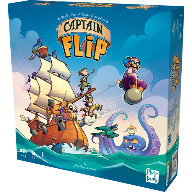 Hijs de zeilen in Captain Flip! Rekruteer je bemanning, trek een tegel en beslis: houden of omdraaien? Vul je schip en verzamel de meeste munten. Een vlot tactisch spel voor 2 tot 5 spelers. Wie wordt de rijkste kapitein van de zee?