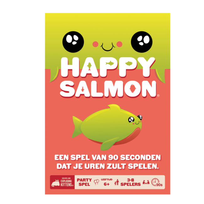 Tijdens een potje Happy Salmon probeer je zo snel mogelijk van je kaarten af te komen door een andere speler te vinden die dezelfde actie moet uitvoeren. Heb je die gevonden, dan voeren jullie de actie samen uit. Daarna mogen jullie de kaarten afleggen. Zo geef je elkaar high fives, de vuist, de enige echte Happy Salmon move of wissel je met elkaar van plaats. Wie in deze chaos als eerste zijn kaarten kwijt is, wint!