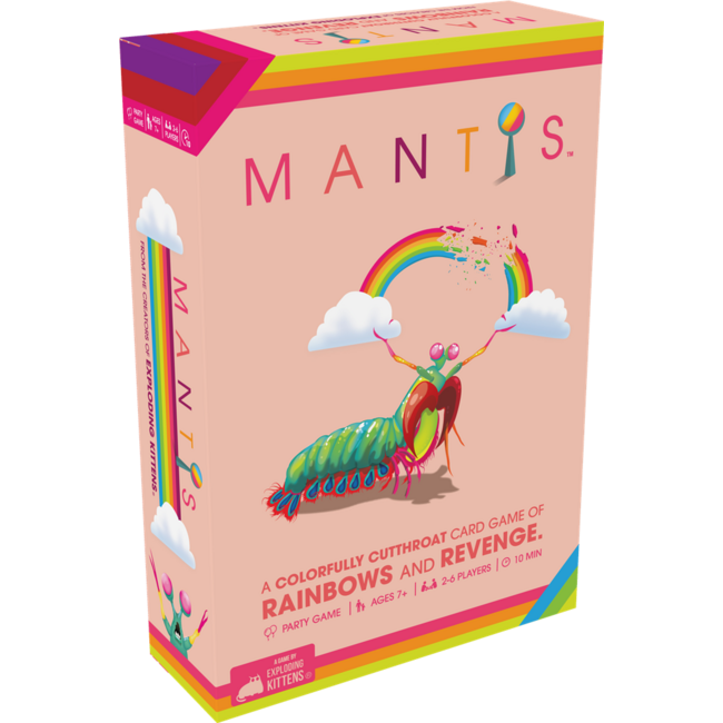 Beleef een kleurrijke strijd vol wraak met het kaartspel Mantis. Dit spel is ontworpen door de makers van Exploding Kittens en combineert eenvoud met chaos. Verzamel kaarten, steel van je vrienden en win in dit razendsnelle spel.