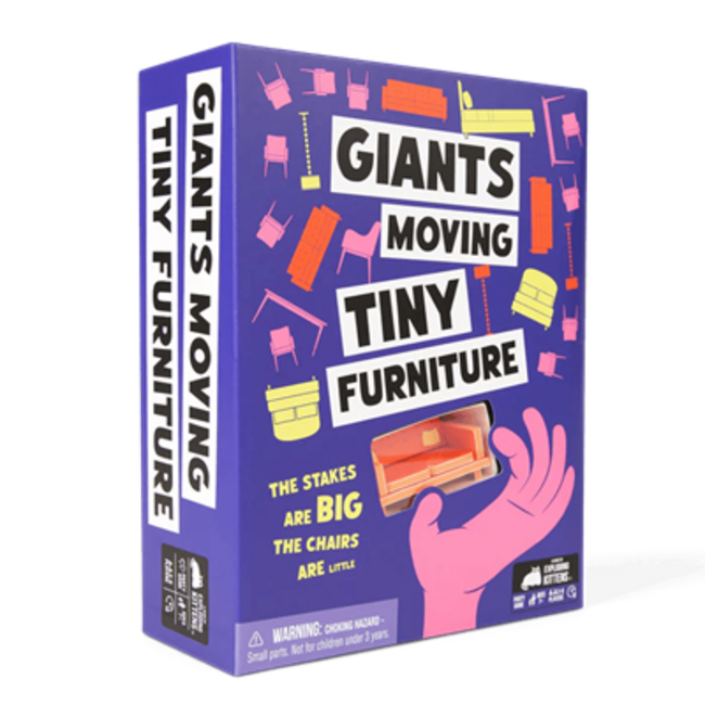 Voel je groot en onhandig in Giants Moving Tiny Furniture. Probeer piepkleine meubels te verplaatsen zonder alles te slopen. Een hilarisch partyspel van de makers van Exploding Kittens voor 3 tot 8 spelers. Wie heeft de vastste hand en wint?