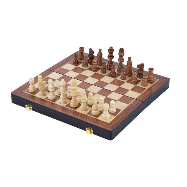 Dit schaakspel van Longfield is gemaakt van mooi essenhout en heeft een ingelegd speelveld. Het bord is inklapbaar waardoor je het makkelijk opbergt of meeneemt. Een klassiek houten schaakspel voor uren speelplezier thuis of op reis.
