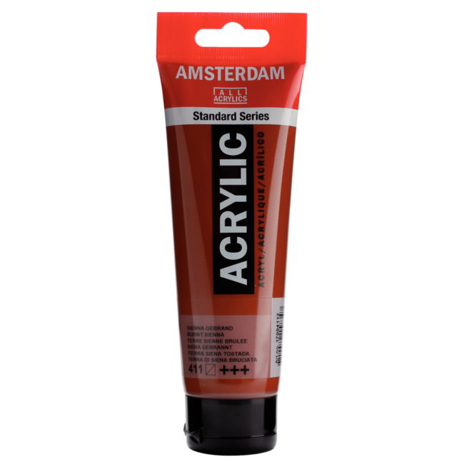Met Amsterdam Acrylverf 411 Sienna Gebrand 120 ml schilder je met een warme, aardse bruintint die diepte en natuurlijkheid toevoegt aan je werk. De verf droogt snel, is geurloos, flexibel en blijft minimaal 100 jaar lichtecht.