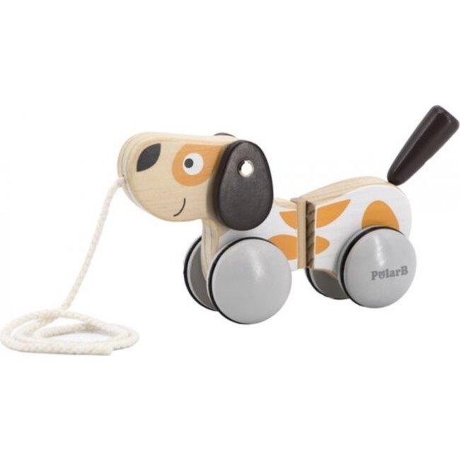 Ga op avontuur met deze schattige houten trekpuppy van PolarB! Dit leuke trekdier op wieltjes is perfect voor peuters die hun eerste stapjes zetten en graag een vriendje meenemen op ontdekkingstocht. Dankzij het touwtje kan de puppy moeiteloos voortgetrokken worden, terwijl de beweegbare oortjes en staart voor extra speelplezier zorgen.