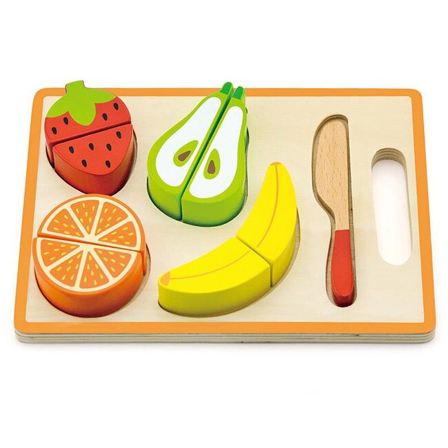 De set is zowel een puzzel als snijspeelgoed, ideaal voor rollenspel en fantasierijk koken. Kinderen oefenen hun hand-oogcoördinatie en leren over gezond eten terwijl ze vrolijk spelen. Perfect voor in de speelkeuken of als leerzaam cadeautje.