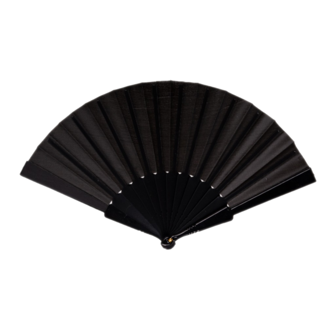 Zwarte waaier van het merk PartyXplosion. Deze waaier is gemaakt van plastic en canvas. Doe de waaier open en wapper voor verkoeling!