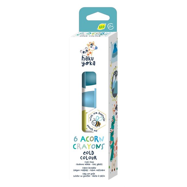 Met deze waskrijtjes in de vorm van eikels van Haku Yoka kunnen kleine kinderen heerlijk kleuren. De krijtjes zijn gemaakt met echte bijenwas en hebben een vorm die perfect in kleine handjes past zonder snel te breken.